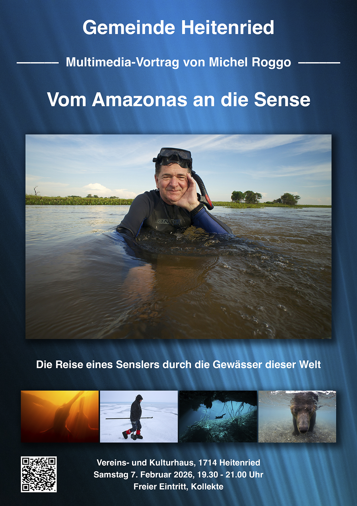 | «Vom Amazonas an die Sense» Vereins- und Kulturhaus, 1714 Heitenried Samstag 7. Februar 2026 um 19h30 |